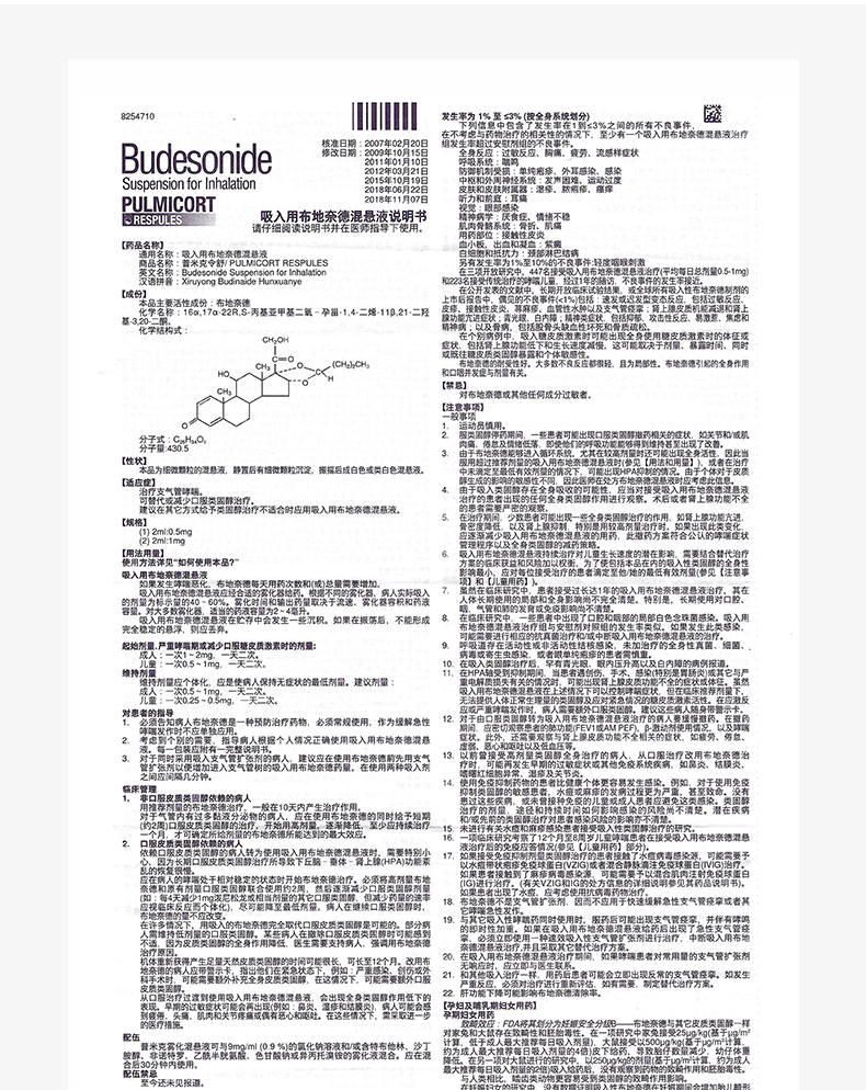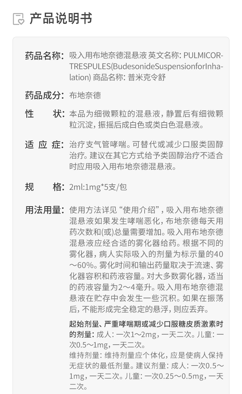 药品名称: 普米克令舒 吸入用布地奈德混悬液